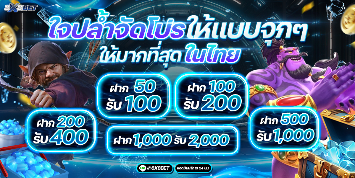 โปรโมชั่นและโบนัสที่หลากหลายก็เป็นอีกจุดเด่นของ 8x8bet ตั้งแต่โบนัสต้อนรับสำหรับสมาชิกใหม่ โบนัสเติมเงิน และกิจกรรมพิเศษต่างๆ ที่จัดขึ้นเป็นประจำ ทำให้สมาชิกมีโอกาสเพิ่มเงินรางวัลได้มากขึ้น